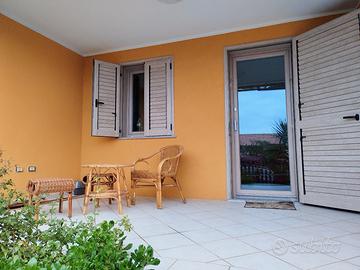 Abitazione arredata con vista mare disposta su due livelli composta da due camere da letto matrimoniali, due bagni, una cucina ed un soggiorno con divano letto matrimoniale. Sono presenti due ampie terrazze, quella al piano superiore ha un tavolo per mangiare all'aperto con vista mare e quella al piano inferiore è utilizzabile come area relax. E' dotata di