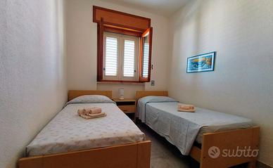 Affitto casa vacanze a Torre Vado, nel Salento. La casa, completamente ristrutturata, dispone di due camere da letto e può ospitare fino a cinque persone. Inclusi comfort come aria condizionata, zanzariere, lavatrice, barbecue, forno a microonde, macchina per caffè e parcheggio interno privato. All'esterno, potrete godere di una splendida vista mare dai due balconi, ideali per colazione, pranzo e cena, e uno spazio esterno con doccia e lavandino.