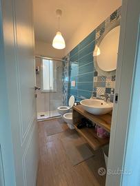 Sistemazione per Max 6 persone, con tre camere da letto, due matrimoniali, un doppia letti singoli, due bagni, giardino privato e solarium con doccia.