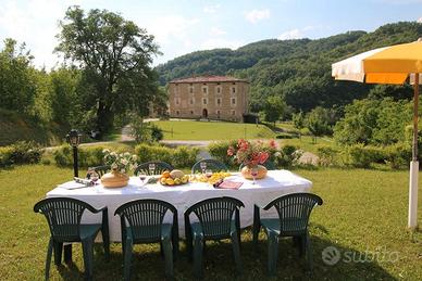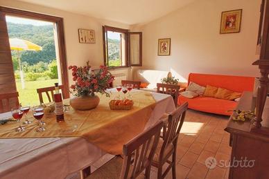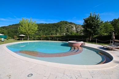 SUPER LAST MINUTE PONTI + ESTATE Oasi di quiete e relax completamente immersa nella natura incontaminata. Relais Valguerriera è composta da 3 Casali indipendenti + piscina e vasca idromassaggio in comune. Piobbico (provincia di Pesaro e Urbino) - Marche. Casale "ESSICCATOIO" indipendente ad uso esclusivo 11-20 persone, (mq. 180) con giardino privato arredato con tavolo, sedie e ombrellone per mangiare anche all'esterno e godersi la quiete del luogo. Oasi di quiete e relax completamente immersa nella natura incontaminata. Ideale per gruppi di amici e famiglie in vacanza insieme. TOTALE POSTI LETTO = 20 (12 + 8 IN DIVANO LETTO) Il Casale è composto da 3 appartamenti non comunicanti. Ingresso indipendente dal giardino privato, Soggiorno/pranzo di mq. 25 con cucina e forno ove ritrovarsi tutti insieme, 2 soggiorni con angolo cottura, 4 camere matrimoniali con 3° letto + 4 divani letto a 1 piazza 1/2 in aree soggiorno, 3 bagni con doccia. Zona barbecue. n. 3 appartamenti: 1 Trilo + 2 Bilo Descrizione Appartamenti: n. 1 TRILOCALE (5+4) - mq. 80 Soggiorno/pranzo con cucina e forno (mq. 25), 2 divani letto e TV. 2 camere (1 matrimoniale con 3° letto e 1 matrimoniale), 1 bagno con doccia. N. 2 BILO (3+2/cad) mq. 50/cad Idem Trilo ma ciascuno con 1 sola camera da letto matrimoniale + 3° letto LAST MINUTE PONTI 2 giorni/1 notte: € 600,00 3 giorni/2 notti: € 1.000,00 4 giorni/3 notti + 1 giorno GRATIS: € 1.400,00 Giorni supplementari: € 200,00 LAST MINUTE ESTATE - soggiorno settimanale 8 giorni./7 notti: Maggio/Settembre: € 1.600,00 Giugno: € 1.800,00 Luglio: € 2.100,00 Agosto: € 2.500,00 SCONTO DI € 200,00 per soggiorno 15 giorni/14 notti Le quote comprendono: Benvenuto con bottiglia di vino Piscina con vasca idromassaggio, ombrelloni, sdraio lettini Consumo di energia elettrica, acqua, gas da cucina Parcheggio Biancheria (letto-bagno-cucina) Frigorifero, Lavatrice Attrezzatura da cucina Barbecue Escluso: Pulizia finale euro 100,00