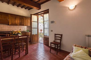 La grande casa colonica, ristrutturata nel rispetto della tradizione, è suddivisa in tredici deliziosi appartamenti, ciascuno con ingresso indipendente, arredati in stile rustico.