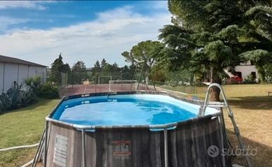 Affittasi settimanalmente splendido casale con curatissimo parco alberato comprensivo di tennis/calcetto,piscina fuori terra,canestro basket,ping pong,giochi per bambini,barbecue all'aperto oltre a intero piano primo e mansarda sovrastante(il piano terra privato resta chiuso e vuoto)Capienza massima 15Persone...tutto comunque in esclusiva per un solo gruppo!!!!....È tutto per voi!!!!