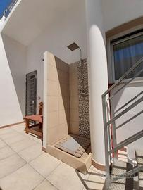 Composta da ingresso soggiorno con angolo cottura divano letto camino e bagno patronale con AMPIA doccia camera da con letto matrimoniale e letto a castello allo stesso livello troviamo veranda con arredo da esterno e doccia esterna con acqua calda e fredda accanto una scala che da accesso direttamente alla zona solare arredata anch'essa con mobili da esterno.