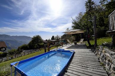 NO CAPODANNO - Esclusiva baita tipica di montagna 7 posti letto. Animali non ammessi. Luminoso panoramico soggiorno, divano letto matrimoniale, caminetto tv wifi gratuito, cucina lavastoviglie frigorifero congelatore microonde ecc., camera matrimoniale, camera 3 letti singoli, bagno con box doccia, terrazza panoramica. Esclusivo giardino barbecue piscina 160x240xh.60 terrazza prendisole amache carrucola capanna indiani giochi vari per bambini. Parcheggio privato. Località Passo Fobbia (Bs) altitudine 1100 mt. Lago d'Idro 9 km. Lago di Garda 22 km.