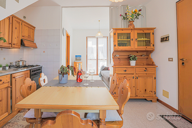 L'immobile è diviso su 2 livelli e si compone di: angolo cottura, zona giorno con divano, bagno con box doccia e 2 terrazze pranzabili al piano primo;