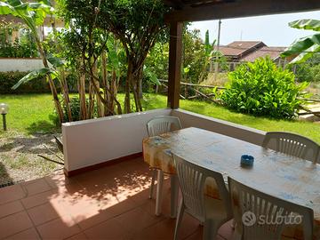 L'appartamento è suddiviso: 2 camere matrimoniali, 1 soggiorno con angolo cottura, 1 bagno con doccia, TV color, lavatrice, veranda coperta e giardino circostante.