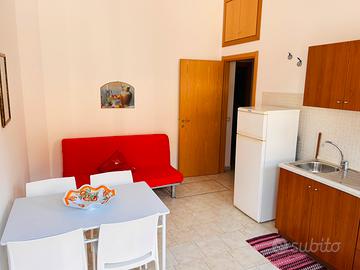 Una camera da letto con letto matrimoniale e letto a castello, cucina abitabile con divano, completa di stoviglie e bagno con box. C'è il terrazzino con tenda da sole e divanetto dove è possibile rilassarsi. E' climatizzato.