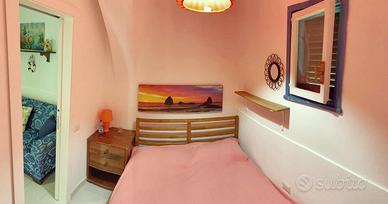 La casetta si trova in un punto strategico dell'isola tra le due spiagge (acqua calda e sabbie nere) è vicinissima ai supermercati e al corso principale dove ci sono i ristoranti e i negozi. La casetta consiste in soggiorno con il divano letto e angolo cottura e una camera da letto. Posti letto sono un letto matrimoniale (140cm) e un letto a castello. La terrazza è abitabile e dotata di una cucina. Ci sono climatizzatore e lavatrice.
