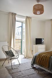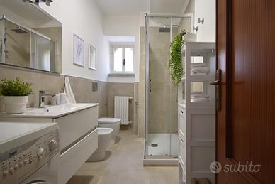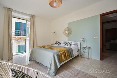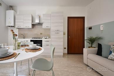 Dispone di una stanza da letto matrimoniale con biancheria ed di un divano letto, per 4 posti letto complessivi. Ampio angolo cottura con piano fornelli, cappa aspira odori, frigorifero, forno, macchina elettrica del caffè e moka, stoviglie, tovagliato, batteria da cucina, set completo di utensili, servizio piatti, bicchieri e posate, suppellettili. Ferro e asse da stiro e due ventilatori. Scope, scopettone, secchio e bidoni per la raccolta differenziata. Bagno con box doccia e kit teli personale, asciugacapelli. Due TV schermo piatto, citofono, WiFi, autoclave, lavatrice e stendino. Riscaldamento autonomo. Due balconcini. Animali ammessi.