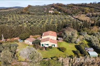 Si affitta bellissimo casolare toscano di mq 400 su due livelli con grande giardino recintato di mq 5000. La casa si trova in una posizione particolare sotto le colline nella campagna tra Castagneto e Bogheri circondata da secolari uliveti e famosi vigneti, a pochi minuti di auto dal mare . Zona tranquilla immersa nella natura , punto di partenza per escursioni a piedi e bicicletta. Al piano terreno grande cucina abitabile con camino, lavastoviglie, forno , microonde, salone di 70 mq con grande tavolo da pranzo, salotto con divani , poltrone e camino. Bagno , studio , cantina, lavanderia e ulteriore salotto. Al primo piano, bagno, 3 grandi camere matrimoniali di cui una con bagno privato e una camera doppia più piccola , totale 10/11 posti letto. Tutte le camere dispongono di impianto di aria condizionata indipendente. SI AFFITTA SOLAMENTE PER i PERIODI : AGOSTO PRIME 2 SETTIMANE DI SETTEMBRE