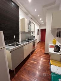 L'appartamento di 50 mq si trova in un palazzo del '600:ha una zona living all'interno della quale c'è letto matrimoniale standard ed uno a scomparsa alla francese di 120cm,con piccolo divanetto e tavolo.La cucina è completamente accessoriata, bagno con doccia e ingresso indipendente all' interno del palazzo al primo piano.
