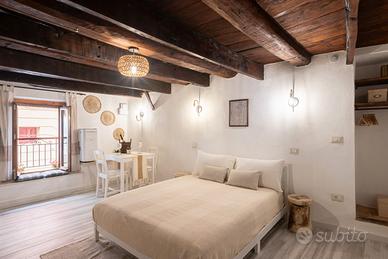 Benvenuti ad Arc de San Martino, un monolocale accogliente nel cuore del centro storico di Alghero, a due passi dai bastioni Marco Polo. Ristrutturato con travi a vista e comfort moderni, è ideale per coppie o viaggiatori solitari. "Arc de San Martí" significa arcobaleno in catalano algherese: simbolo di rinascita, speranza e giornate piene di sole. Una nuova avventura per noi, e ora anche un po' per te. L'appartamento si sviluppa in un unico ambiente di circa 20 mq, progettato con cura per offrire funzionalità e comfort. L'ingresso si apre su una zona giorno raccolta ma funzionale, con tavolo da pranzo per due, perfetto per gustare una colazione o una cena a lume di candela. La cucina compatta è ben attrezzata: piano a induzione a un fuoco, frigorifero con piccolo congelatore, macchina da caffè, bollitore e tutti gli utensili necessari per preparare i tuoi piatti preferiti anche in vacanza. La zona notte è arredata con un comodo letto matrimoniale (150x190 cm), armadio a muro, comodini e una Smart TV da 32 pollici per rilassarti dopo una giornata di esplorazioni. Il bagno privato è completo di lavabo, WC (senza bidet) e una comoda cabina doccia. Ogni dettaglio è pensato per garantire praticità, anche in uno spazio compatto. Comfort e servizi inclusi, Wi-Fi veloce e stabile, Aria condizionata , Lenzuola e set di asciugamani corpo, viso e bidet, Kit di benvenuto per ogni ospite, Ferro da stiro e asse.
