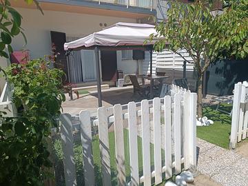 Il monolocale dispone di ingresso e giardino privato recintato eattrezzato con tavoli lettini gazebo...