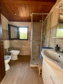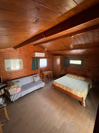 Si affitta, solo brevi periodi, min 3 notti max 1 mese, SOLO USO VACANZA o trasfertisti, chalet completamente indipendente,di nuova realizzazione,quasi tutto in legno,coibentato e termocondizionato dotato di: bagno con WC,bidet, lavabo, box doccia, scaldabagno elettrico, presente pure doccia esterna(anche essa servita dall'acqua calda)realizzata artigianalmente in legno,lavatoio esterno, NO LAVATRICE, angolo cottura completo di frigo,lavabo, fuochi,fornetto, attrezzi da cucina, stanza da letto con letto matrimoniale e divano letto da una piazza e mezzo (totale 4 posti letto in unica stanza),TV,giardino curato su 4 lati,punti acqua esterni,acqua potabile e acqua di pozzo,ampio patio frontale con pergola in legno, per godere del fresco serale assaporando i cibi cotti col barbecue a disposizione degli ospiti.