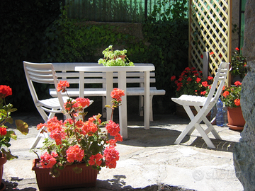 Casa indipendente su due piani con tre camere da letto per un totale di sei posti letto in villaggio ben servito da negozio, bar, ristorante. Doppi servizi completi.Ampio spazio esterno arredato con tavolo , sedie e sdraio. Posizione tranquilla e soleggiata, vista panoramica eccezionale.Box auto privato . Disponibile mese giugno a settimane. Non si accettano cani.