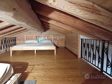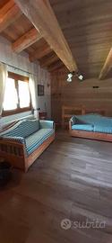 chalet immerso nella natura incontaminata composto : al piano terra da cucina/sala, bagno con doccia idromassaggio e soppalco con un letto matrimoniale e un letto singolo; al piano seminterrato una camera matrimoniale e camera con letto a castello e due letti singoli , bagno con vasca. E' dotato di caldaia a gas per l'acqua calda e per il riscaldamento con i caloriferi. Non c'è la linea elettrica, ma solo il pannello solare . All'esterno c'è una area attrezzata con tavolo/ panche e barbecue, vicino scorre un ruscello e si forma in modo naturale una piccola spiaggetta, ove bagnarsi e assaporare la freschezza dell'acqua. Si raggiunge attraverso una strada sterrata ed è preferibile avere un auto 4X4 . il periodo invernale non viene affittato. La distanza dalla strada asfaltata e dal paese di S.Antonio è di circa 2 Km. Per salire con l'auto bisogna fare il permesso in Comune