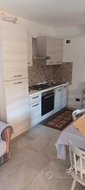 Cucina e ampia veranda con una doccia esterna.