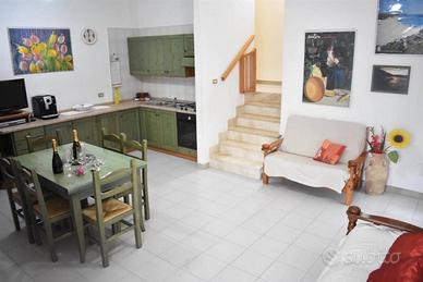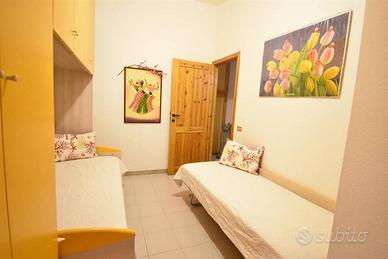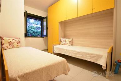 - Appartamento 2: Zona living e cucina a vista, tre camere da letto (due con letto matrimoniale e una con letto a castello) un bagno con box doccia.