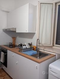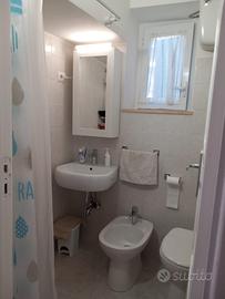 Affitto app.to 1° piano distante circa 1 km dal mare con balcone che affaccia sul viale principale ; camera matrimoniale con aggiunta letto singolo ,bagno, salotto con divano letto e cucinino ( lavatrice); parcheggio privato riservato(1 posto auto).