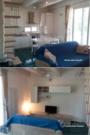 Villino nuovo indipendente 85mq su 2 livelli. Piano terra (50 mq): sala-soggiorno e angolo cottura, divano letto per 2, camera con letto matrimoniale e letto a castello, bagno in camera.