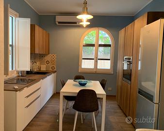 Ampio Living climatizzato, cucina con tutti gli elettrodomestici.
