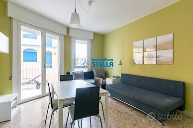 Appartamento in condominio fronte mare ubicato in zona Piazza Marconi - Largo Tempini. Il monolocale situato al terzo piano con ascensore è composto da un luminoso soggiorno con 2 divani letto singoli, TV e armadio, angolo cottura separato, bagno nuovo con doccia. Dal soggiorno e dalla cucina si può accedere allo spazioso terrazzo abitabile con ampia vista mare. Appartamento dotato di lavatrice e aria condizionata. Posto auto condominiale. Posto spiaggia compreso. CIR: 027019-LOC-02158 CIN: IT027019B4BDF5R35U CLASSE E kWh 257,67