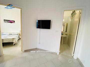 Ciascun appartamento è un bilocale composto da ingresso in soggiorno con divano letto, cucina con angolo cottura attrezzato con piatti, bicchieri, pentole e posate, frigorifero con congelatore, una camera da letto con letto matrimoniale, un bagno con doccia ed un comodo balcone corredato con tavolo e sedie per mangiare all'aperto. Inoltre sono dotati di televisore, climatizzatore e posto auto. Posti letto 2/4 per appartamento.