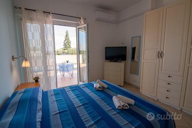 VILLA TIGANI comprende appartamenti indipendenti in zona molto tranquilla ideale per coloro che amano mare e relax. L'ACCESSO ALLA SPIAGGIA È DIRETTO attraverso il cancelletto del giardino. Quest'ultimo è molto ampio, con prato inglese, zone relax con amache, sedie e tavoli da esterni, area barbecue con gazebo, posti auto all'ombra. Essendo PRIVATA è tutta recintata e l'accesso è permesso solo agli ospiti che godranno dell'uso esclusivo di un telecomando per aprire il cancello automatizzato. Vi sono docce esterne (con miscelatore) e armadietti molto comodi per chi va o rientra dalla spiaggia. Ogni appartamento è arredato ed equipaggiato per garantire un ottimo comfort ed un sereno soggiorno; ideale per 4/5 persone comprendono: due stanze da letto con materassi e reti ortopedici, un bagno con box doccia o vasca, ampia cucina ben attrezzata, lavastoviglie, ampio terrazzo o balcone, smart tv, lavatrice, lavastoviglie, videocitofono, zanzariere, aria condizionata, connessione Wi-fi gratuita. Vi sono ristoranti vicini alla struttura raggiungibili a piedi in pochi minuti passeggiando sull'adiacente lungomare; a cinque minuti in automobile da centri commerciali, negozi, bar e a soli tre chilometri da Soverato, la "Perla dello Ionio". La pulizia che garantiamo è massima e sono disponibili noleggio di biancheria per il bagno, lenzuola e pulizia dell'appartamento durante il soggiorno. Non sono ammessi festini e schiamazzi notturni in quanto la regola che vige nella proprietà è quella della pace e del relax. eventuali visite in struttura da parte di parenti e/o amici saranno ammesse previa approvazione da parte del locatore. Per l'alta stagione, le prenotazioni verranno effettuate da sabato a sabato. MAX SERIETÀ