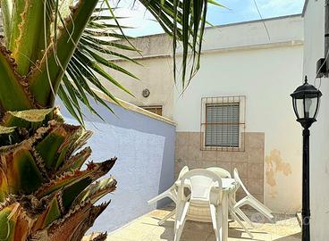 La casa, al piano terra, è spaziosa e funzionale: dispone di cucina/tinello attrezzata, una camera quadrupla e un bagno con doccia. È circondata su tre lati da un giardino privato con tavolo e sedie, ideale per cene o relax all'aperto.