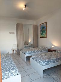 Affittasi ampio appartamento così composto: grande soggiorno con zona pranzo, divano, un divano letto singolo, finestra con vista mare ed accesso ad uno dei due balconi, la casa si trova al piano rialzato ed è divisa dalla strada da un giardinetto condominiale con siepe ed alberi che garantisce privacy e può ospitare biciclette. La cucina è abitabile completamente attrezzata ed ha accesso al medesimo balcone della sala, una spaziosa camera matrimoniale con armadio quattro stagioni, una grande camera luminosa con accesso ad un secondo balcone e tre letti singoli; il balcone affaccia sul retro dell'appartamento ed offre la possibilità di stendere i panni, inoltre è fornito di un comodo lavatoio esterno. L' ampio bagno finestrato ha il box doccia e la lavatrice. Nelle immediate vicinanze dell'appartamento sono presenti parcheggi liberi. Possibilità di accedere direttamente sia la spiaggia libera che a quella attrezzata proprio di fronte alla casa. Ottima posizione rispetto alla bellissima passeggiata lungomare completamente rinnovata e ad alla pista ciclabile che porta verso le spiagge meno popolate in direzione di Marina di Grosseto. Il centro è raggiungibile con una passeggiata di 10 minuti gran parte in zona pedonale il quartiere è dotato di tutti i servizi. Non possiamo accettare animali domestici.