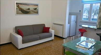 Trilocale al piano rialzato, 2 camere da letto, sala con angolo cottura (con stoviglie e forno a microonde), bagno con doccia. Climatizzatore, WiFi e smart monitor. Fornitura di telerie da letto e da bagno per 6 persone. Possibilità box auto. A 900 metri pianeggianti dalla spiaggia e dal centro paese, procedendo per viale Faraggiana. Non si accettano animali. Nelle vicinanze Conad, farmacia e bar tabacchi. Prezzo variabile in base al periodo ed al numero di persone. Solo affitti uso turistico max 30 giorni. Richiesta cauzione da restituire al termine del soggiorno.