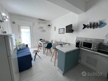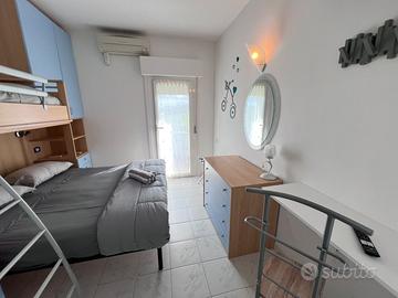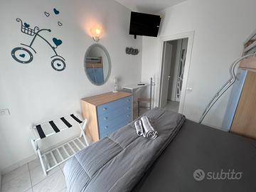 Questa residenza a 300 mt dal mare, offre fino a 5 posti letto, con una confortevole camera matrimoniale + letto a ponte con armadio molto capiente, tv e climatizzatore.