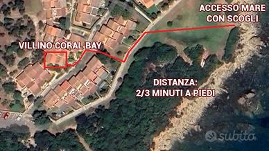 Se cerchi una vacanza rilassante in un contesto riservato, a pochi passi dal mare cristallino, Coral Bay è la scelta perfetta. Villino indipendente curato nei dettagli , ideale per chi desidera comfort, tranquillità e una splendida vista sul mare, situato nel villaggio I Pionieri, all'interno del complesso di Porto Corallo (Villaputzu - Sud-Est Sardegna). La casa dispone di 5 posti letto ed è ideale per coppie e famiglie con bambini. L'immobile è in fase di completa ristrutturazione e sarà completamente arredato a nuovo. Il villino è disposto su due livelli Piano terra o soggiorno con cucina o camera da letto con letto a castello (piazza e mezzo sotto + singolo sopra) o bagno completo con wc, bidet e doccia o ampia terrazza Piano superiore o camera matrimoniale o bagno completo con wc, bidet e doccia o terrazza panoramica con splendida vista mare Dotazioni o Cucina completamente attrezzata con: piano cottura, forno, forno microonde, frigorifero, macchina caffè, stoviglie o Smart TV 40" o Aria condizionata nelle camere da letto o Ventilatore a pale nel soggiorno e nel terrazzo inferiore o Lavatrice o Biancheria (lenzuola e asciugamani) con cambio settimanale o Parcheggio riservato Distanza dal mare e dalle spiagge o 50 metri dal mare con scogliera o 600 metri dalla splendida spiaggia di sabbia fine di Porto Tramatzu (con basso fondale adatto per bambni), raggiungibile in 8/10 minuti a piedi con una piacevole passeggiata nella pineta lungo mare o 1,5 km dalla spiaggia di ciottoli di Porto Corallino o 3 km dalla lunghissima spiaggia di sabbia di Prumari, che arriva fino alla foce del Flumendosa o 15 km dalla spiaggia selvaggia di Murtas Tutte le spiagge del territorio di Villaputzu dispongono di parcheggi gratuiti. Distanze principali o Porto e aeroporto di Cagliari: circa 90 km o Porto di Arbatax: circa 70 km o Porto e aeroporto di Olbia: circa 230 km