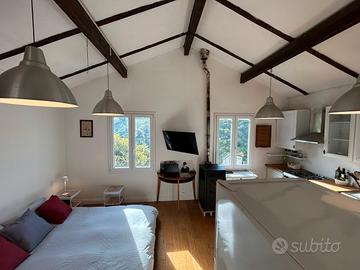 casetta indipendente in collina a 10 km dal mare, 20 minuti in auto, monolocale open space di 30m2 (adatto a max 2 persone) con 1000 m2 di giardino recintato e terrazza di 50 m2, parcheggio riservato