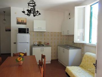 Dal 13-9 al 20-9. L'appartamento, situato al piano primo della colonica, accessibile da scala esterna, è composto da: 1 soggiorno-cucina (TV), 1 camera con letto matrimoniale e 1 camera con letto matrimoniale e letto singolo (tot. 5/7 posti letto), 1 bagno con w.c., bidet e box-doccia.