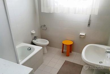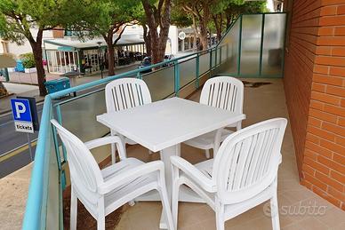 Tranquillo trilocale al 1° e unico piano senza ascensore: 1 camera grande matrimoniale con terzo letto, cameretta con 2 letti singoli, soggiorno-pranzo con divano letto, angolo cottura, bagno con vasca-doccia e lavatrice, TV, aria condizionata, comodo terrazzo abitabile affacciato sulla zona pedonale, n.1 posto auto numerato e n.1 posto spiaggia. Totale posti letto: 5+1.
