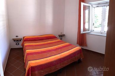 L'appartamento è composto da cucina, bagno, due camere da letto indipendenti con aria condizionata e terrazza dotata di ombrellone, tavolo, sedie e sedie a sdraio.