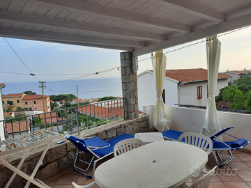 bagno con cabina doccia. La cucina si affaccia su una grande terrazza con vista mare dove poter mangiare e godere di un bellissimo panorama.una stanza lavanderia privata.