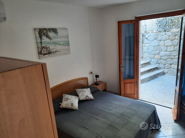 La camera e il bagno si affacciano su un' ampia corte privata con doccia esterna , e barbecue. Il Bilocale dispone di 4 posti letto.