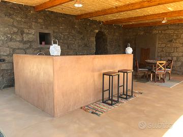 Affitto dammuso completamente ristrutturato nel 2022, vista mare e tramonto terrazzo coperto da Cannizzo di 50 m quadri con cucina esterna, sala da pranzo e living, all'interno troviamo una alcova matrimoniale chiusa da tenda, un bagno e un divano letto su soggiorno.