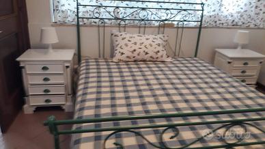 Camera matrimoniale con letto matrimoniale e letto a castello 2 posti, zona cabina armadio separata dalla stanza. piccolo disimpegno e bagno cieco con grande doccia. Cucina soggiorno. Giardino con gazebo, lavabo e doccia esterna.
