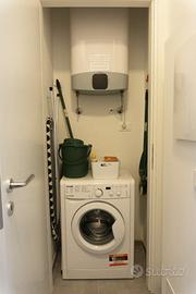 * Disimpegno con lavatrice e set cortesia per pulizia. Ferro e asse da stiro. Aspirapolvere.