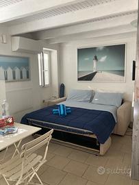 Piccolo grazioso monolocale arredato per due persone a due passi dalla spiaggia, a piano terra di una casa tipica ligure e composto da soggiorno con cucina a vista divano letto matrimoniale comodo ortopedico, bagno con doccia. Aria condizionata, zanzariere, serramenti doppio vetro