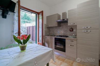 Appartamento posto al primo piano, si compone da piccolo soggiorno con angolo cottura, camera matrimoniale, bagno con doccia, spazio esterno attrezzato ed ampia terrazza uso esclusivo attrezzata per mangiare all'aperto.