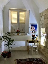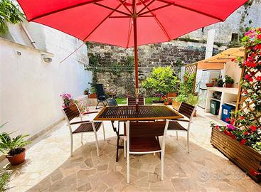La casa indipendente, posizionata nel borgo antico di Castro a ridosso delle antiche mura del castello, a 20 metri dal fantastico Belvedere di Piazza Perotti, è ideale per un soggiorno confortevole e rilassante nel Salento. Completamente ristrutturata e arredata nel 2018 può ospitare comodamente 4 adulti e, in caso di necessità, anche un bambino piccolo.Vicina ad Otranto e a Santa Maria di Leuca che si raggiungono percorrendo una delle più belle strade costiere d'Italia. Sono presenti due spaziosissime camere da letto matrimoniali, di cui una con bagno privato e antibagno, un secondo bagno che presenta un ampio antibagno con lavatrice ed una zona soggiorno-pranzo e cucina attrezzatissima, realizzata su misura, comoda e luminosa. Inoltre vi è un delizioso giardino attrezzato per pranzare e cucinare all'aperto, con piccolo orto, con affaccio diretto sulle mura del castello. Il mare è raggiungibile agevolmente a piedi in 8-10 minuti tramite una comoda scalinata con magnifica vista della costa.