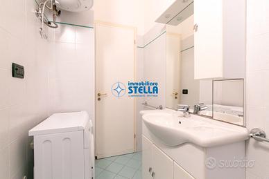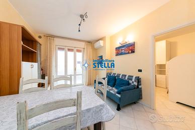 DOGE - 22 - Piazza Nember, per famiglie. Comodo appartamento al secondo piano con ascensore, situato all'interno di un condominio a pochi passi dal mare e dal corso principale. L'ingresso si apre sulla zona giorno con soggiorno e cucina a vista, mentre la zona notte comprende una camera matrimoniale con letto matrimoniale e letto a castello, per un totale di quattro posti letto, e un bagno con doccia. Completa la proprietà un terrazzo attrezzato con tavolo e sedie, ideale per pranzi all'aperto o momenti di relax. L'appartamento è dotato di aria condizionata, forno a microonde e lavatrice, offrendo tutti i comfort necessari per una vacanza confortevole. È disponibile un posto auto esterno. CIN: IT027019B4UAKZ789Z CIR: 027019-LOC-11181