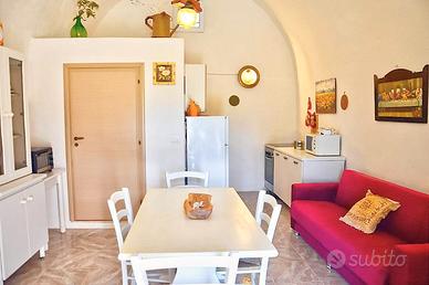 Si propone in affitto la porzione principale, la più ampia, composta da due vani interni (paiare) comunicanti dotati di servizi, oltre a una stanza indipendente accessibile dal giardino, completa di bagno con box doccia e camera matrimoniale arredata.