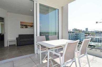 RIF.9063 AFFITTIAMO PER PERIODI ESTIVI MENSILI\ SETTIMANALIESCLUSIVO ATTICO VISTA LAGUNA al quinto piano per una settimana da Favola! Con Piscina, Solarium e Salotto Coperto al piano terreno, nella prestigiosa zona di Piazza Aurora a pochi passi dal mare. Appartamento disposto su due livelli composto da soggiorno con ampia zona cottura e pranzo, camera con divano letto matrimoniale e generoso bagno con box doccia. Il secondo livello composto da un amplio vano con due camere matrimoniali e due finestre autonome, doccia e wc. Dotato di un enorme terrazzo a sud, attrezzato per mangiare con gli amici e prendere il sole, e di un secondo terrazzone uso Solarium per splendidi aperitivi/colazioni in compagnia al tramonto/alba vista laguna! Full Optional: Clima, lavatrice, lavastoviglie, TV 50 Pollici, POSTO SPIAGGIA, posto auto e uso della piscina-solarium-salotto coperto incluso nel prezzo.