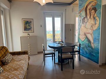 ZONA CENTRALE - A 50 mt dal mare - SECONDA FILA MARE CON VISTA MARE - Appartamento di 80 mq al piano primo con ascensore composto da ampio soggiorno con cucinotto separato, ripostiglio, terrazzi e balconi in ogni stanza, due camere matrimoniali, disimpegno e bagno con doccia. L'appartamento è dotato di: Posto auto privato scoperto interno all'area condominiale, lavatrice interna al ripostiglio, cucina attrezzata, televisore in soggiorno, ARIA CONDIZIONATA in tutti gli ambienti. .5 posti letto. DISPONIBILITA': 6 - 13 GIUGNO EURO 450.00 27 GIUGNO - 04 LUGLIO EURO 650.00 4 - 11 LUGLIO EURO 750.00 11 - 18 LUGLIO EURO 750.00 18 - 25 LUGLIO EURO 750.00 22 - 29 AGOSTO EURO 1000.00 29 AGOSTO - 05 SETTEMBRE EURO 550.00 05 - 12 SETTEMBRE EURO 550.00 ESCLUSE PULIZIE FINALI EURO 80.00 E TASSA DI SOGGIORNO