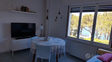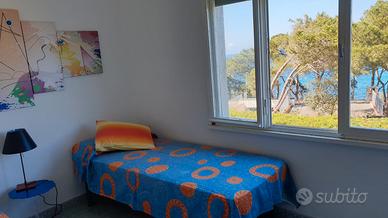 Appartamento in villa di circa 80 mq: 1 camera matrimoniale, 1 camera doppia, disimpegno, ampio soggiorno con divano letto, cucina nuovissima, lavatrice, bagno con doccia e doccia calda esterna. Aria condizionata in tutte le stanze.